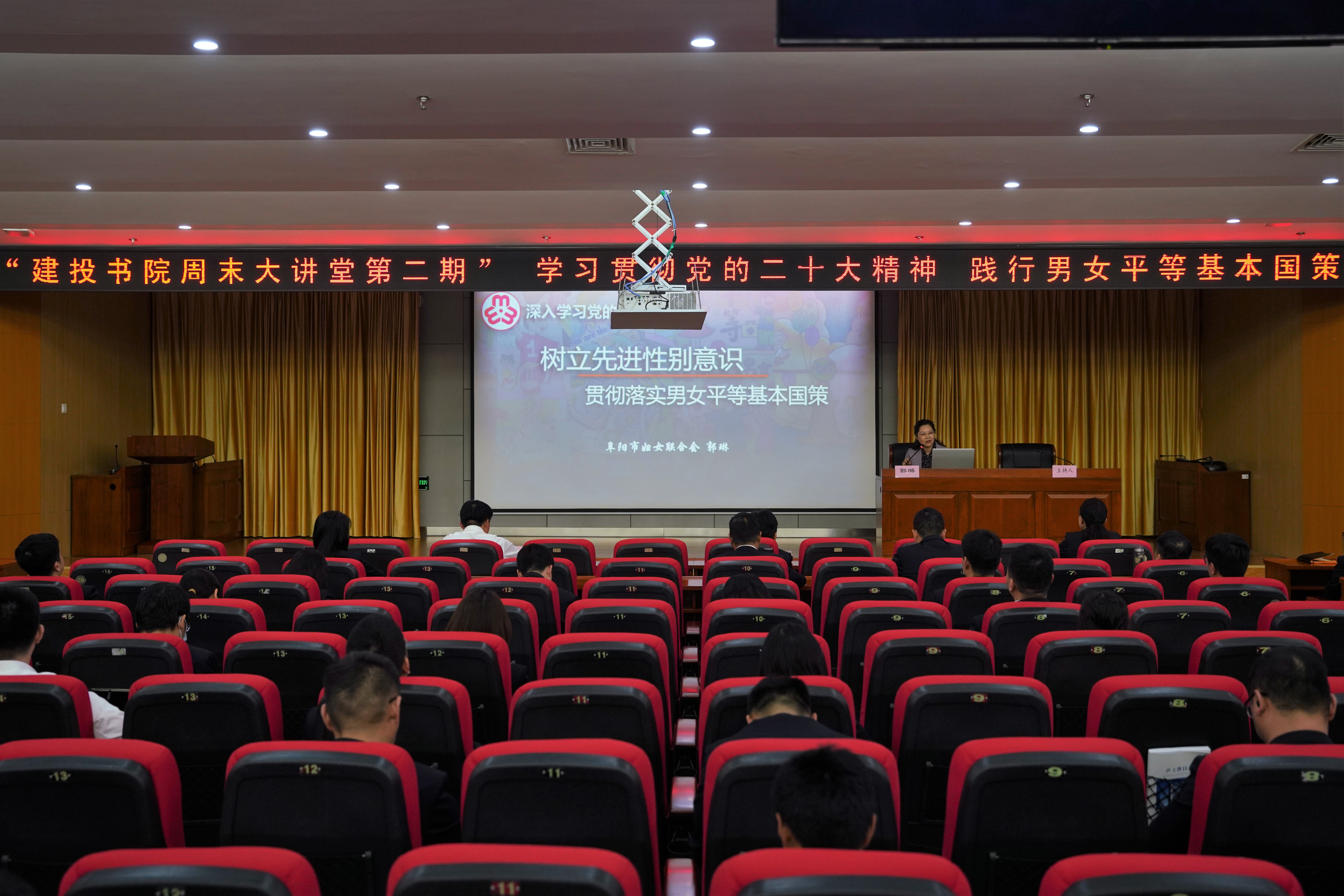 4月14日下午,市建投集團舉辦“建投書院周末大講堂”活動,邀請阜陽市婦聯黨組書記、主席郭琳為全體員工進行專題輔導講座,宣傳學習黨的二十大精神,貫徹踐行男女平等基本國策。